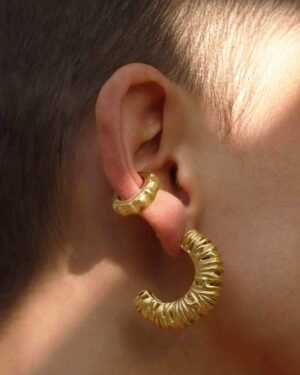 Folded Strata Gold Hoop Earrings for Women and GirlsElevate your accessory game with Folded Strata earrings, where modern design meets timeless elegance. Ideal for women and girls who appreciate unique jewelry, these hoops offer a sculptural, layered look that makes a statement without being overpowering.Made from premium brass alloy and finished with 22KT real gold plating, these folded strata hoops are lightweight, durable, and comfortable for all-day wear. The layered, folded design adds dimension and artistic flair, perfect for enhancing any outfit.The versatile hoops and huggies style ensures they can be worn casually, in the office, or at special events, making them a staple in any modern jewelry collection.22KT real gold plating for a radiant, long-lasting finishPremium brass alloy for durability and comfortable wearFolded strata design for a modern, layered aestheticHoops and huggies style suitable for daily and evening wearPerfect for gifting, parties, or elevating everyday looksThese folded strata hoop
