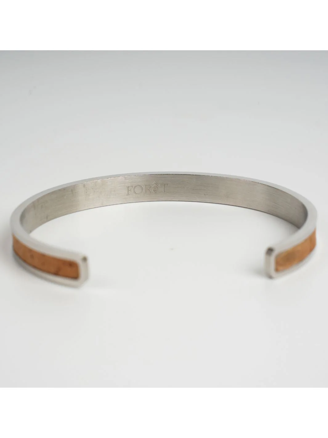 Our "Forest Hues Adjustable Cuff," is a truly one-of-a-kind men's bracelet that seamlessly blends the raw beauty of cork with the sleek elegance of premium grade stainless steel. Available in the distinctive hues of the forest; natural beige, chestnut brown, and mahogany maroon cork bark, and complemented by the rugged allure of stainless steel, this bracelet exudes a striking visual appeal that's bound to make heads turn and conversations flow.