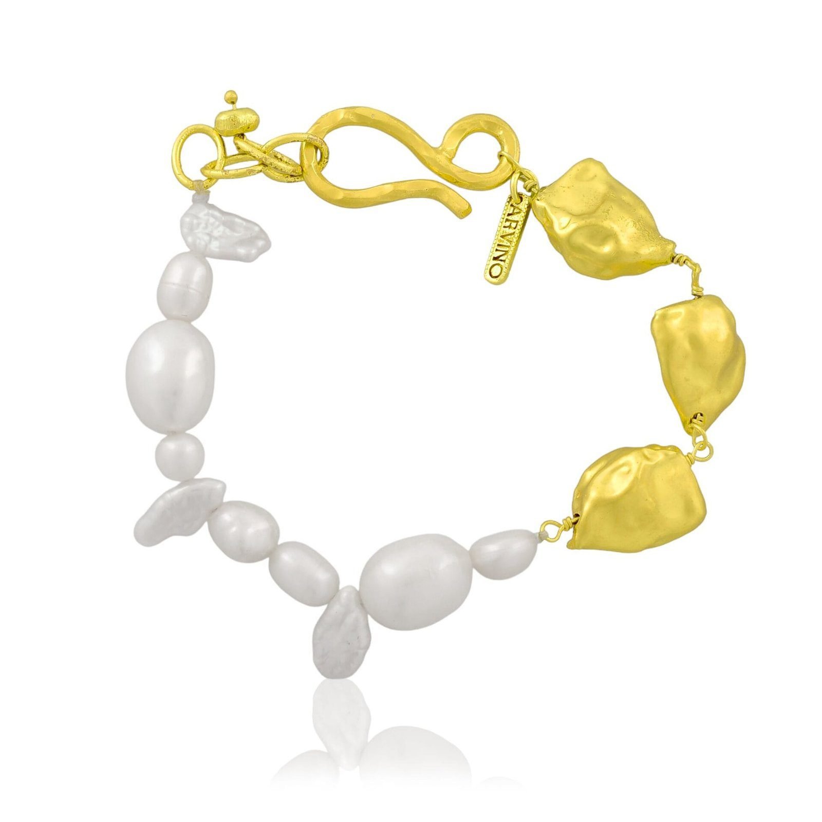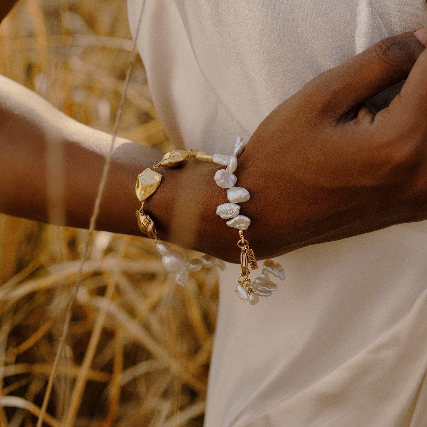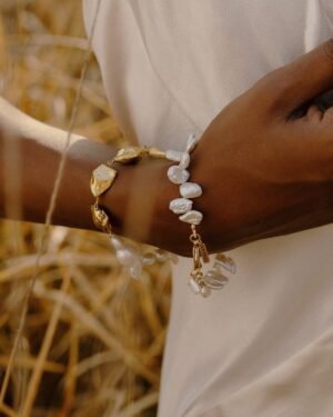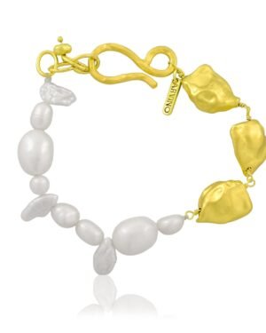 Product OverviewEmbrace elegance with the Harmony Pearl Cross Border Bracelet, a luxurious accessory designed to elevate any outfit. This bracelet features stunning, lustrous pearls combined with 22KT real gold plating on a premium brass alloy, ensuring both durability and exquisite aesthetics. The fusion of classic pearls and modern design makes it a perfect choice for women seeking sophisticated, high-end jewelry.Key Features:Premium Quality: 22KT real gold plating on high-grade brass alloy.Timeless Design: Elegant pearl accents for a sophisticated look.Perfect for Special Occasions: Ideal for parties, weddings, and daily wear.Durable: Crafted for long-lasting wear, with a luxurious finish that resists tarnishing.Versatile: Complements various outfits and adds a touch of luxury to your look.Specifications:Material: Premium Brass Alloy, 22KT Gold Plating, Freshwater PearlsLength: Adjustable to fit most wrist sizesColor: Gold and WhiteOccasions: Weddings, parties, daily wearWeight: Lightweight for comfortWhy Choose the Harmony Pearl Cross Border Bracelet?This stunning bracelet isn't just about luxury?it?s about making