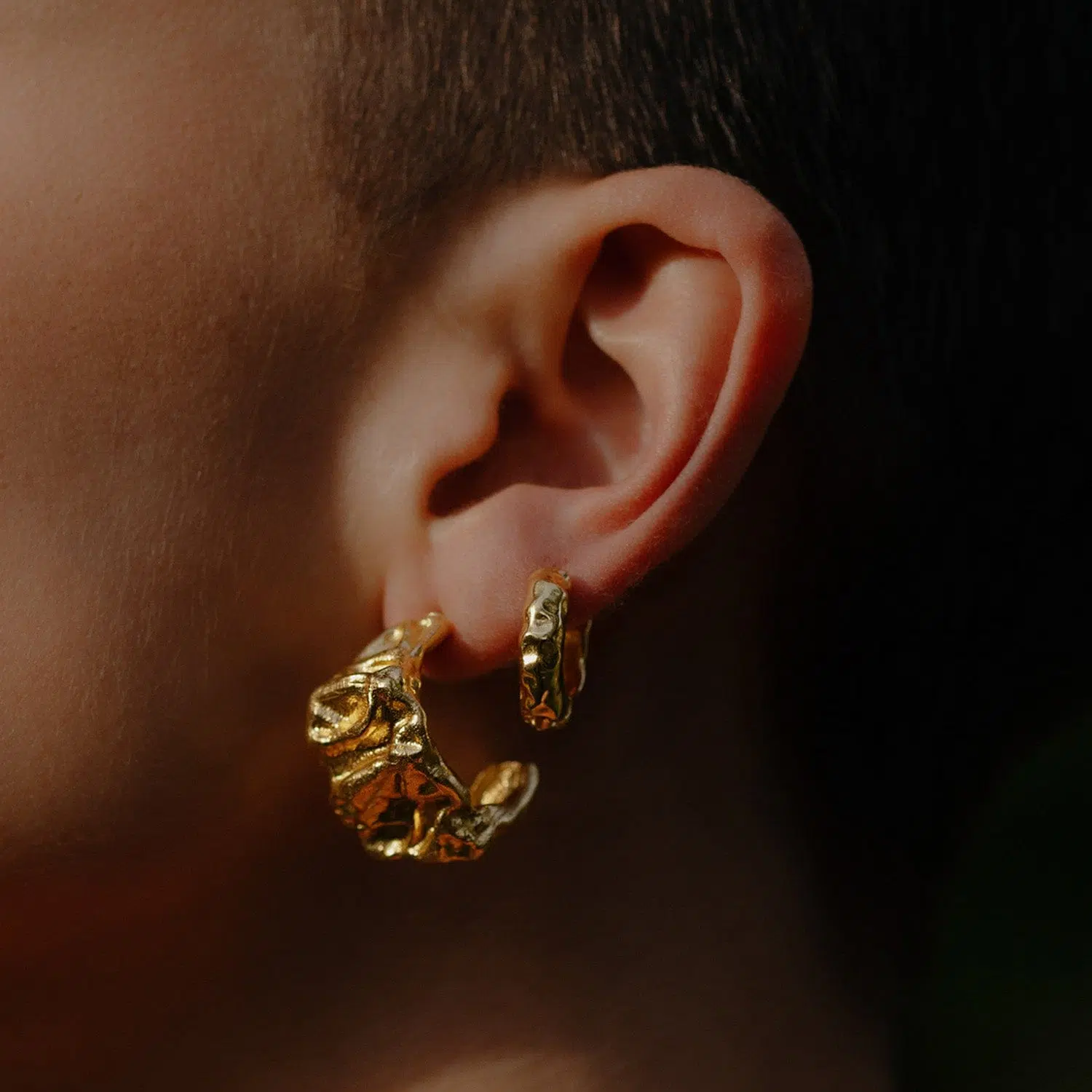 Introducing the Speckled Huggie Earring: a fusion of ancient texture and modern design. Each piece showcases a unique sp