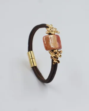 Introducing the "IBERIS Cork Bracelet" where natural elegance meets contemporary sophistication. This exquisite Cork Bracelet is a harmonious blend of sustainable cork, refined ceramic, and a durable stainless steel lock, all beautifully accented in gold tones. Its design is further enhanced by charming floral motifs and elegant ceramic stones, adding a touch of nature-inspired beauty.