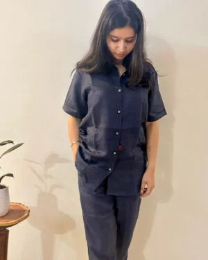 Refresh your wardrobe with the Indigo Ladybug Set, featuring the Indigo Ladybug Linen Top and Indigo Serene Stitch Linen Trousers for a coordinated and charming look.