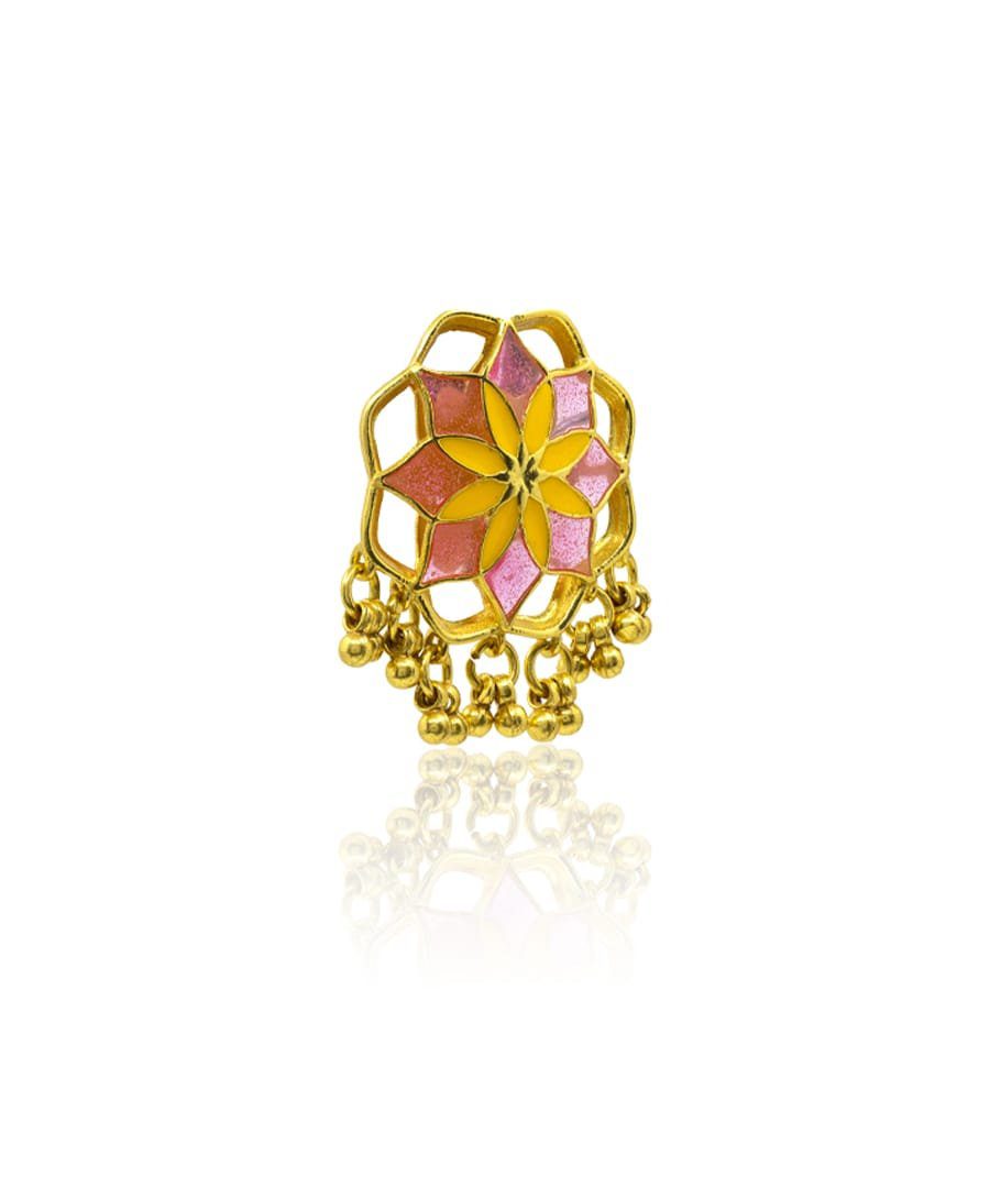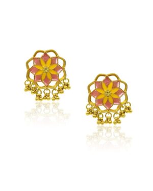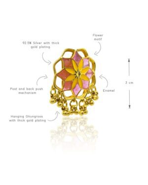 These small studs are handcrafted in 92.5% silver plated with gold & transparent enamel coated with high quality protective coating, These earrings are handcrafted with delicate details and hanging ghungroo's in gold finish., Plating: Gold Plated, Metal Type: 92.5% Sterling Silver, Enamel / plating / gemstone: Transparent Enamel, Lock Mechanism: Post and push back, Measurement cm : Length 3 cm, Measurement inches: Length 1.18 inch, Care Instruction: Keep away from water, perfume and other liquids. Do not use any cleaning agents. Clean when storing in the provided pouches. Store them in moisture free areas and keep them away from water and liquid fragrances.