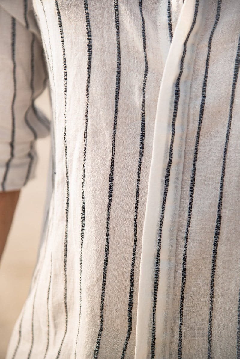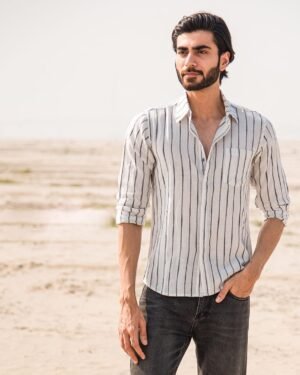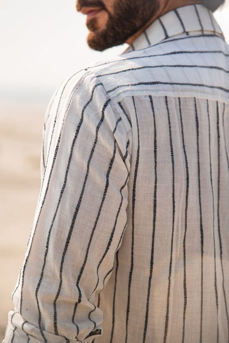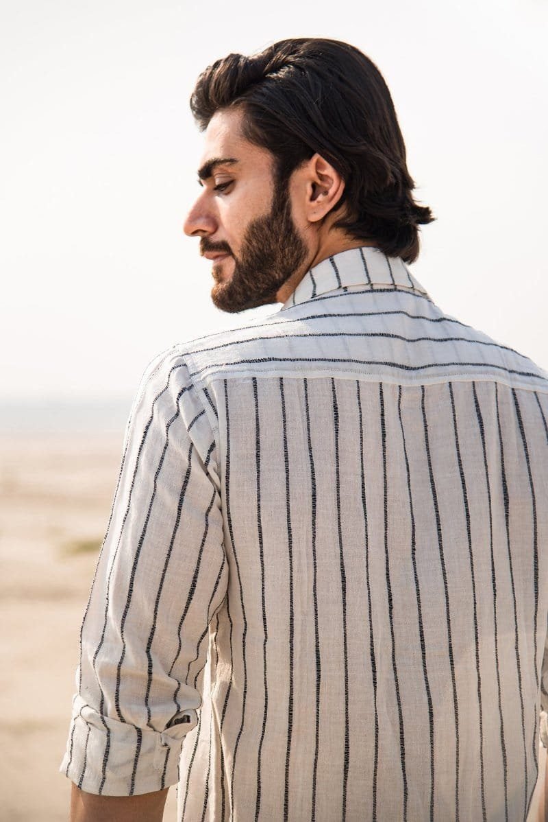 Adorn a casual party style with our white and black shirt made from khadi cotton for comfort and ease of wear. The striped design of the shirt gives an elongated look of refinement featuring full sleeves and a silhouette of class.
