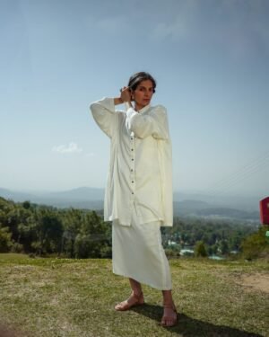 Elegant in the everyday, this lightweight shirt features a relaxed look through the body. Button it up or leave it open over your layered look. Made from lotus fabric and coconut shell buttons.; Craft: Handloom Weaved, Material: Lotus Silk, Return Policy: Non-Returnable, Shipping: 8 to 10 Working Days, Fit: Loose, Occasion: Casual, Sleeve: Yes, Care Description :"Washing Instructions: Fill your bucket with cold water, turn your Lotus silk item inside out, and submerge it. It comes to washing your Lotus silk item, your best bet is to use a high-quality liquid detergent. Add a few detergent drops into the water and stir it well, then leave your item in the solution for three minutes. Gently pull your garment up and down for three to five minutes to remove any dirt. Take your garment out from the sink, drain off the water, and rinse under cold water until the detergent has