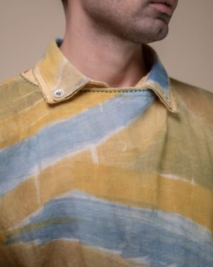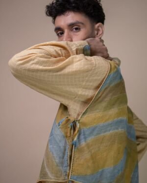 Crafted from 100% cotton fibres and natural materials, the Meadows Handpainted Bib is made from soft Mulmul, hand-painted using natural dyes from indigo, iron; and marigolds collected from temples and repurposed into dyes. The abstract, intuitive brush strokes are the highlight of this design, adding an artistic flair to the piece.