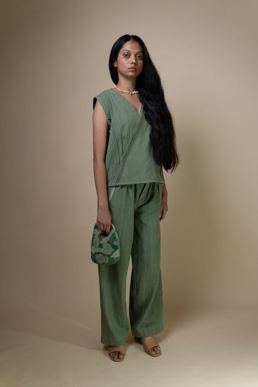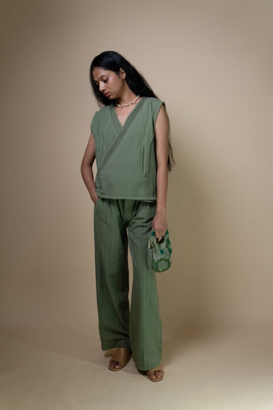 Crafted from 100% cotton fibers and natural materials, the Meadows Unisex Corded Vest is made from our signature Kala Cotton, dyed in a soothing olive colour using azo-free dyes.