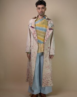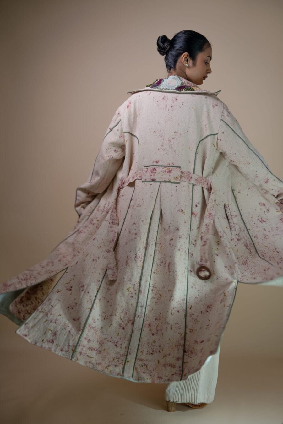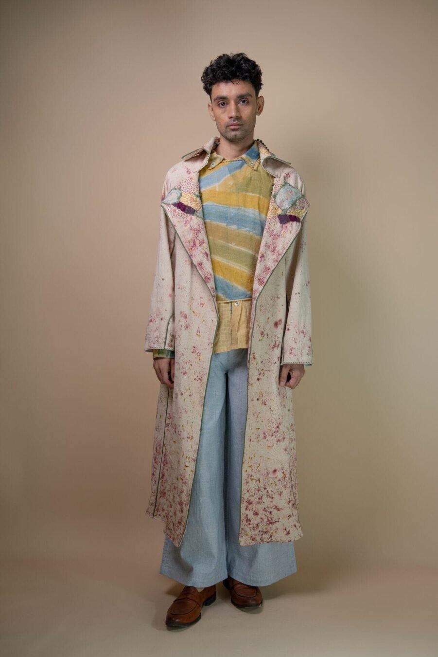Crafted from 100% cotton fibers and natural materials, the Meadows Unisex Denim Trench is made in our signature Kora Denim, with thoughtfully reimagined surface design. This trench is eco-printed using temple flower waste such as roses, hibiscus, and marigolds that have been collected, segregated and repurposed for printing.