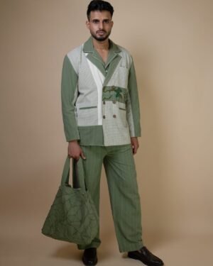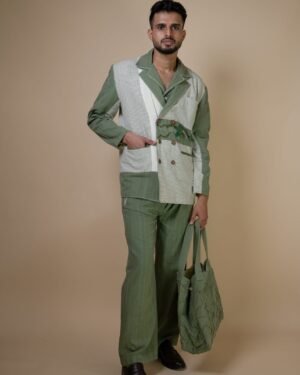 The Meadows Unisex Double Breasted Blazer is crafted from a blend of three variations of our signature Kala Cotton- Undyed, Checkered and Solid Olive in colour using Azo-free dyes. Made from 100% cotton fibers, this blazer transitions seamlessly through the seasons, making it a versatile addition to any minimalist wardrobe with its refreshing yet cozy tone.
