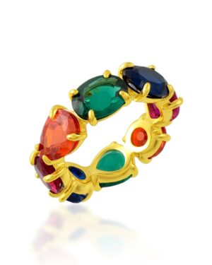 Make a bold statement with our Multihued Crescendo Ring, crafted to dazzle with a vibrant pop of colors. Gleaming with a