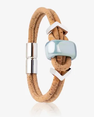 Introducing our Northern Light Vegan bracelet, a contemporary piece of jewellery inspired by the mesmerizing green hues of the aurora borealis. Handcrafted from sustainable Cork Oak Tree bark and adorned with iridescent porcelain ceramic beads, this bracelet is a stunning representation of eco-friendly, modern jewellery.