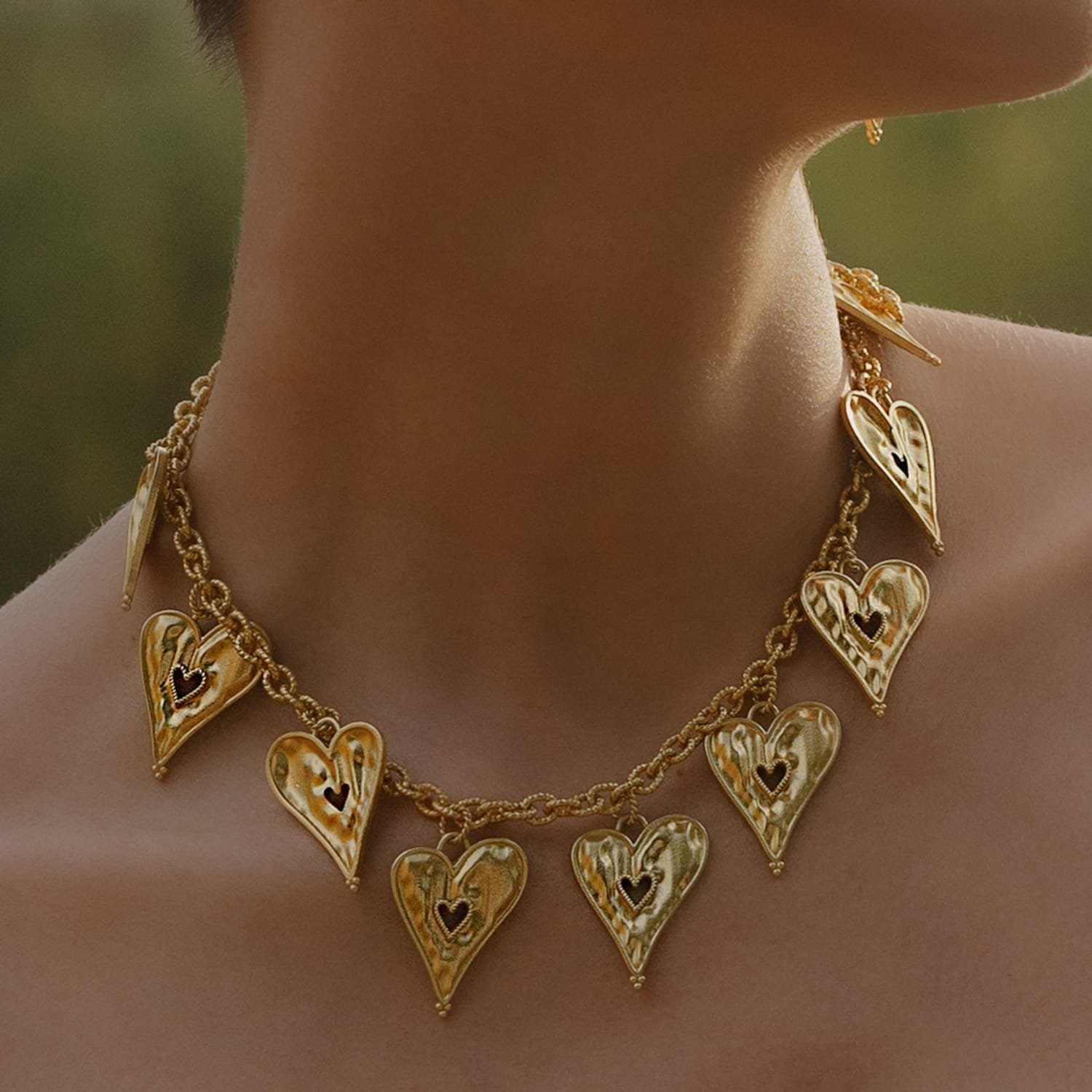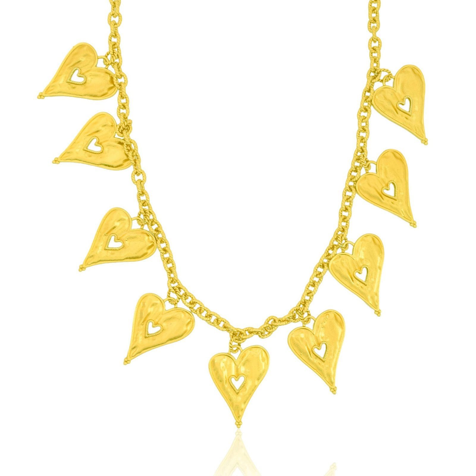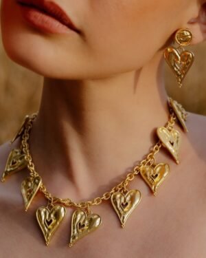 The Romantic Rhapsody Heart Pendant Necklace is a timeless expression of love, elegance, and femininity. Designed with a classic heart motif, this necklace beautifully captures emotions of romance, affection, and connection, making it a meaningful addition to any jewelry collection.Each piece is handmade using premium brass alloy and finished with 22KT real gold plating, offering lasting shine, durability, and a luxurious gold finish. Its refined design makes it versatile enough for daily wear, romantic occasions, festive celebrations, or evening styling.Lightweight and comfortable, the necklace sits gracefully on the neckline, adding a soft yet elegant glow to any outfit. Whether worn solo for a minimalist look or layered with other necklaces for a modern style, it enhances both casual and formal ensembles.This heart pendant necklace makes a thoughtful gift for women—perfect for birthdays, anniversaries, Valentine’s Day, weddings, or self-gifting. The Romantic Rhapsody Necklace blends handcrafted artistry with emotional symbolism, making it