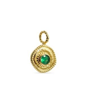 This charm showcases a calming, organic design with a gold-toned, textured surface and a vivid green onyx-like stone at
