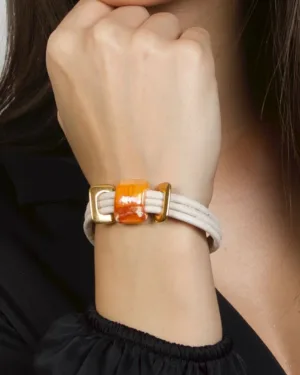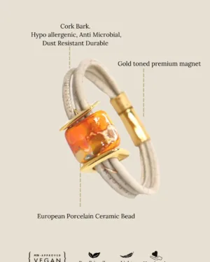 FOReT's Sun and Skies Bracelet is inspired by the skies painted in the colours of the sun while the flowers sway in its light. This limited edition bracelet is handcrafted in cork and designed in ceramic beads.