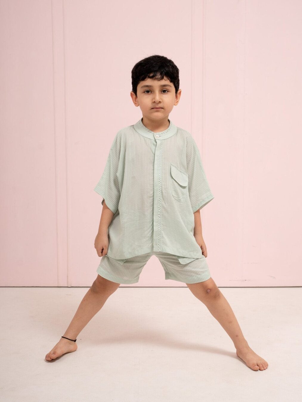 Decorative zig-zag Hand embroidery detailing on collar and placket