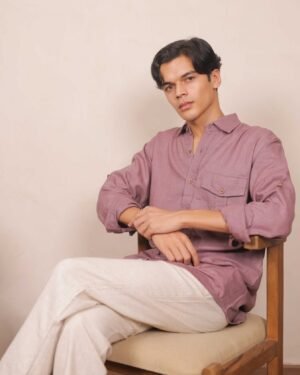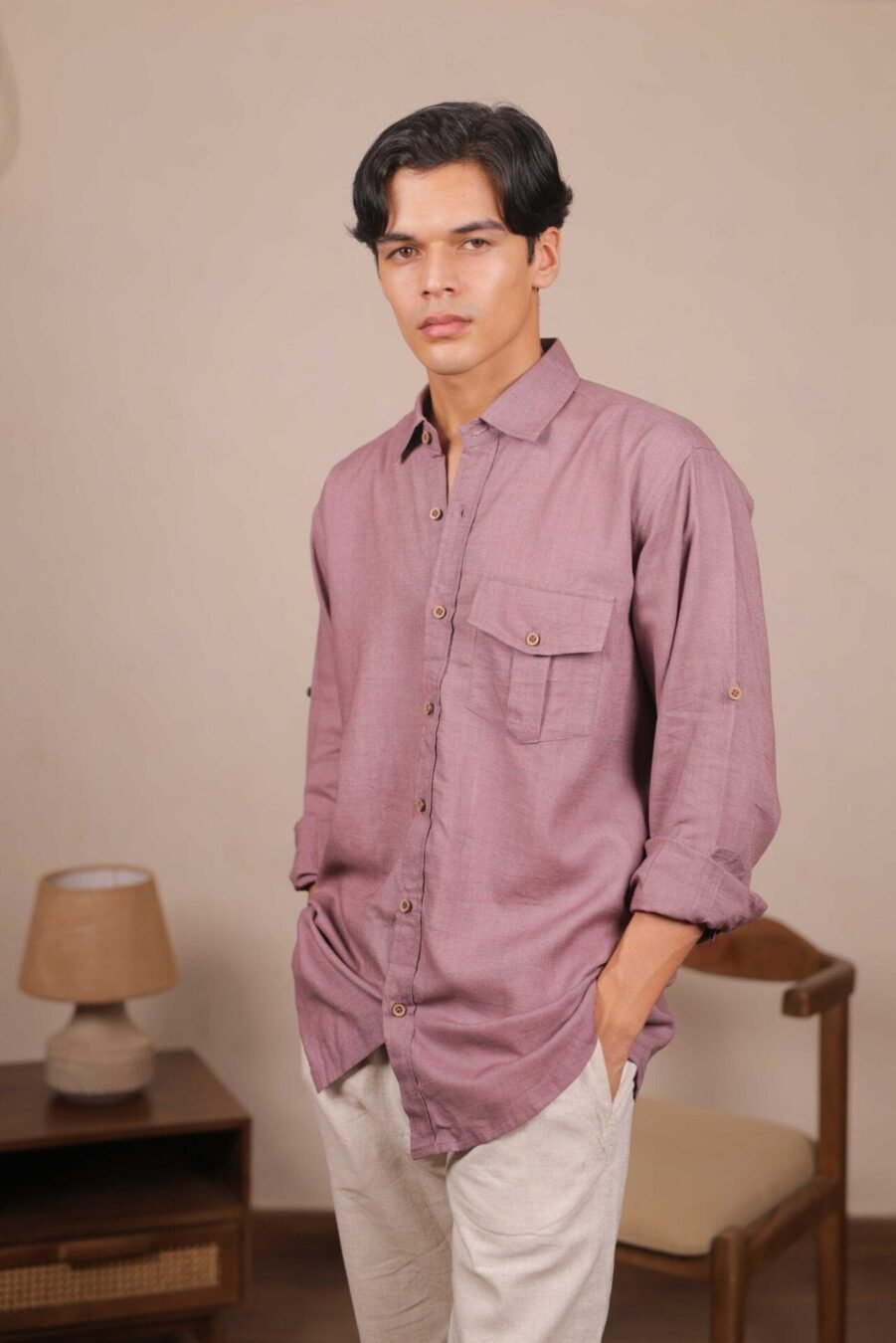 Elevate your wardrobe with Twilight Thread, a timeless handwoven linen-cotton shirt for men in a calming purple hue. Blending breathable linen with soft cotton, this shirt is a conscious choice for those who appreciate artisan-made clothing, natural fabrics, and slow fashion.