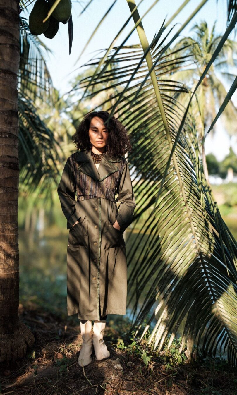 This incredibly versatile trench coat featuring a notch collar, our take on the classic trench with a timeless wrap detail designed from upcycled fabric, made using post production waste that transcends all seasons, making it a perfect wardrobe staple. It can be worn as a dress or as an overlay.