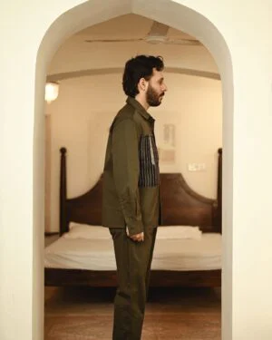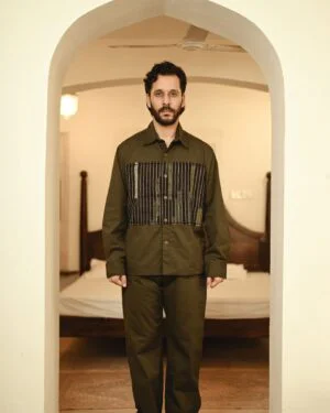 The garment is made from hand woven upcycled fabric and so the color might vary slightly for each batch.
